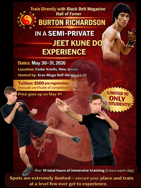 Train in Bruce Lee’s Original Art—Anywhere in the WorldBurton Richardson’s Pressure Tested Jun Fan Jeet Kune Do Distance Learning Course. Over 8 Hours Of Video! Unlock the power, precision, and philosophy of Bruce Lee’s Jun Fan Jeet Kune Do (JKD)—directly...